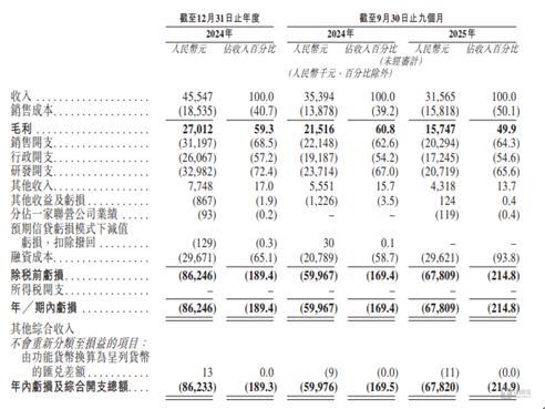 虽然诺令生物拥有着丰富的产品线,但就目前而言,公司的财务状况并不乐观。招股说明书显示,2024年-2025年1-9月(下称“报告期”),诺令生物分别实现营业收入4554.7万元、3156.5万元,年内利润分别为-8624.6万元、-6780.9万元,公司持续处于亏损状态,且亏损的金额比公司当期的营收还多。